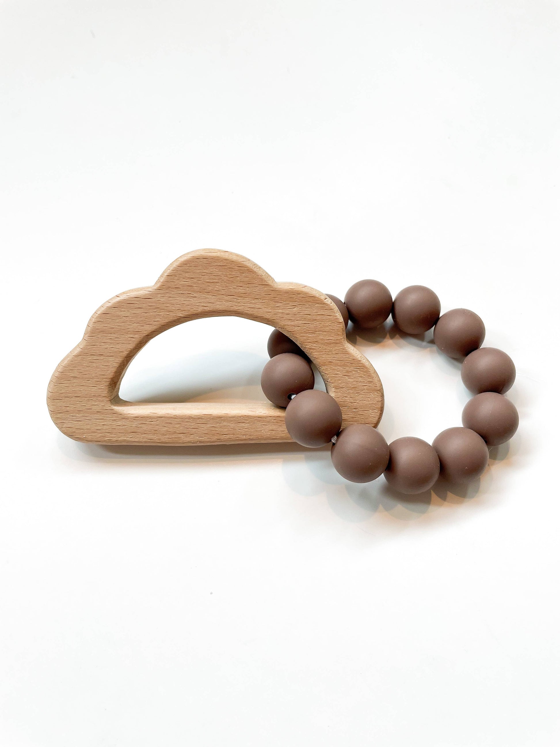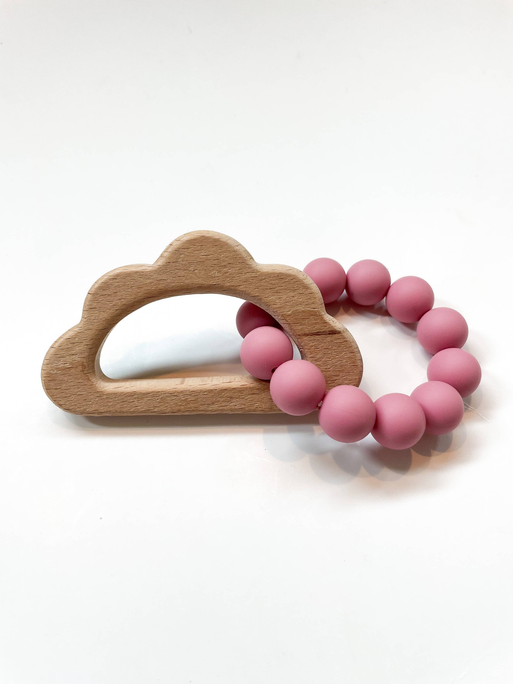 Ease your little one's teething pain with a combination of soft food grade silicone beads, and beech wood accents.