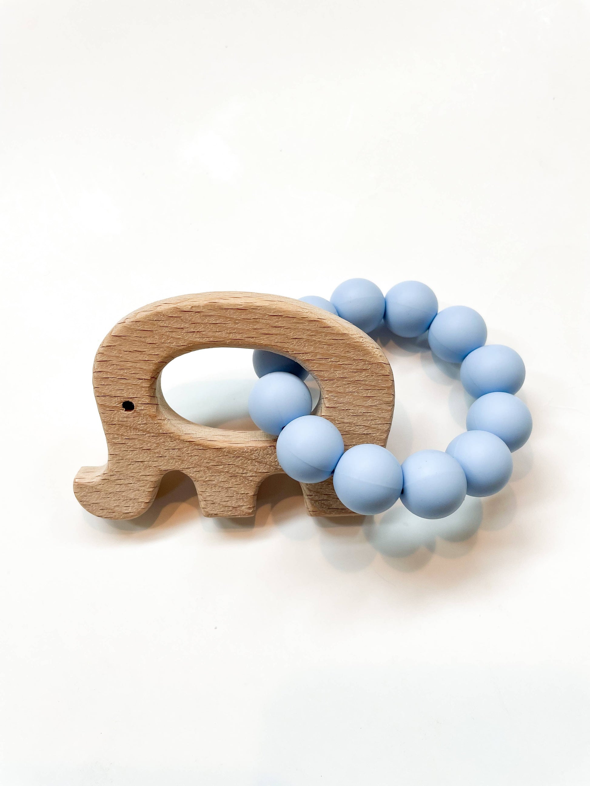 Ease your little one's teething pain with a combination of soft food grade silicone beads, and beech wood accents.