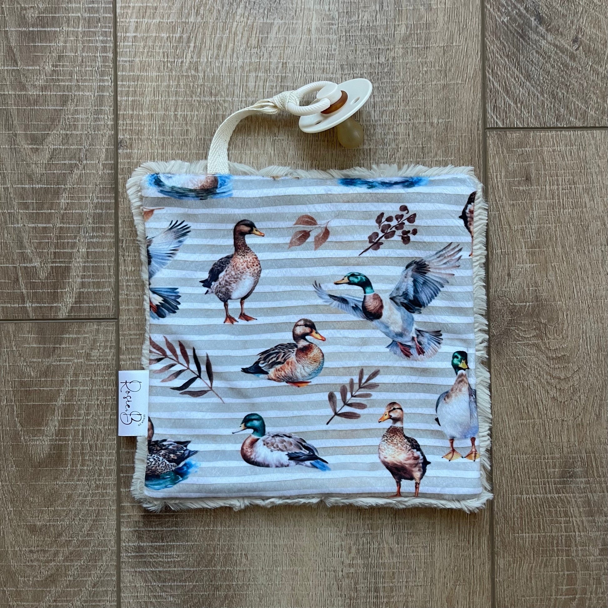 Meet our Paci Pal, designed with a sturdy twill ribbon to hold a pacifier, teether, toy, or any cherished item. At approximately 8x8 inches, it's the ideal size for newborns to grasp and helps older babies locate their pacifier effortlessly. Keep your baby's favorite items within easy reach and avoid losing them in the diaper bag with this practical and cute accessory!