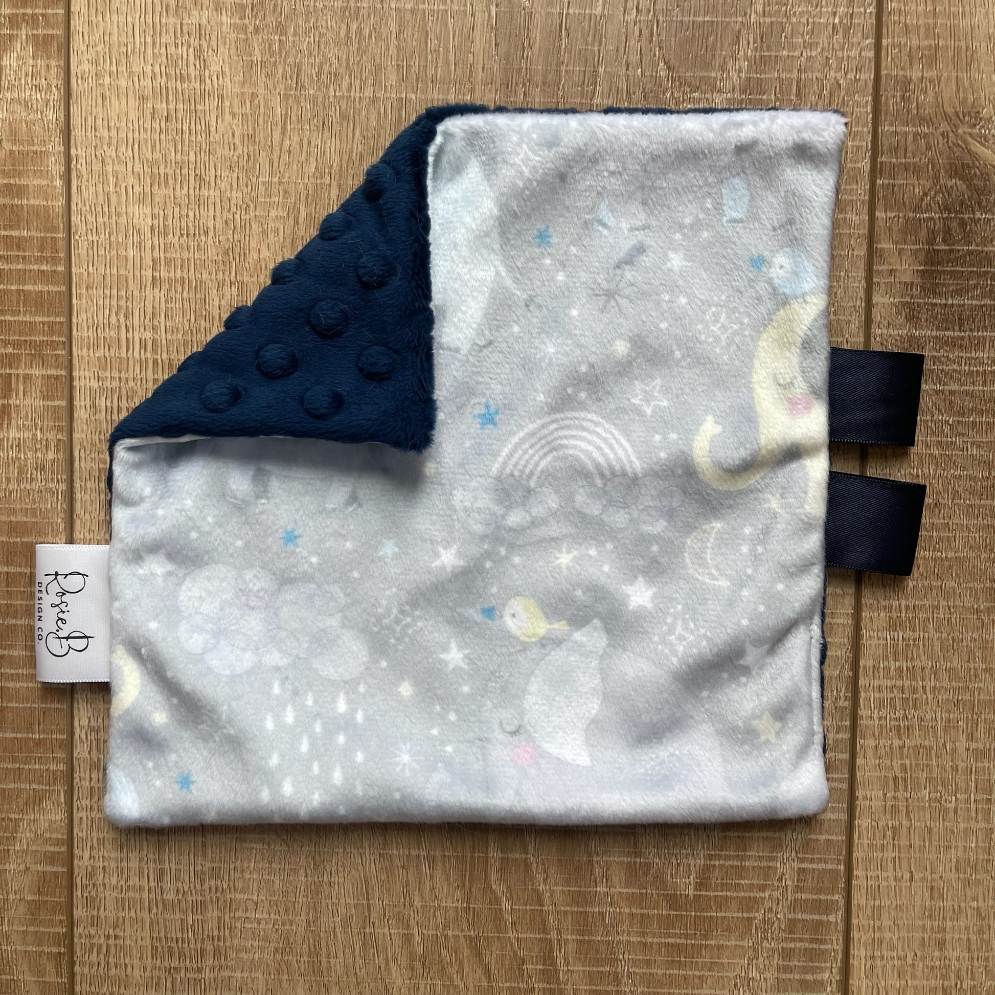 Introducing our Mini Sensory Blanket, thoughtfully designed with two durable satin tags that provide engaging textures for little hands to explore. Measuring approximately 8x8 inches, it’s perfectly sized for newborns to grasp and for older babies to enjoy soothing sensory play. Soft, compact, and comforting—this mini blanket is an adorable essential for on-the-go snuggles and everyday soothing moments!