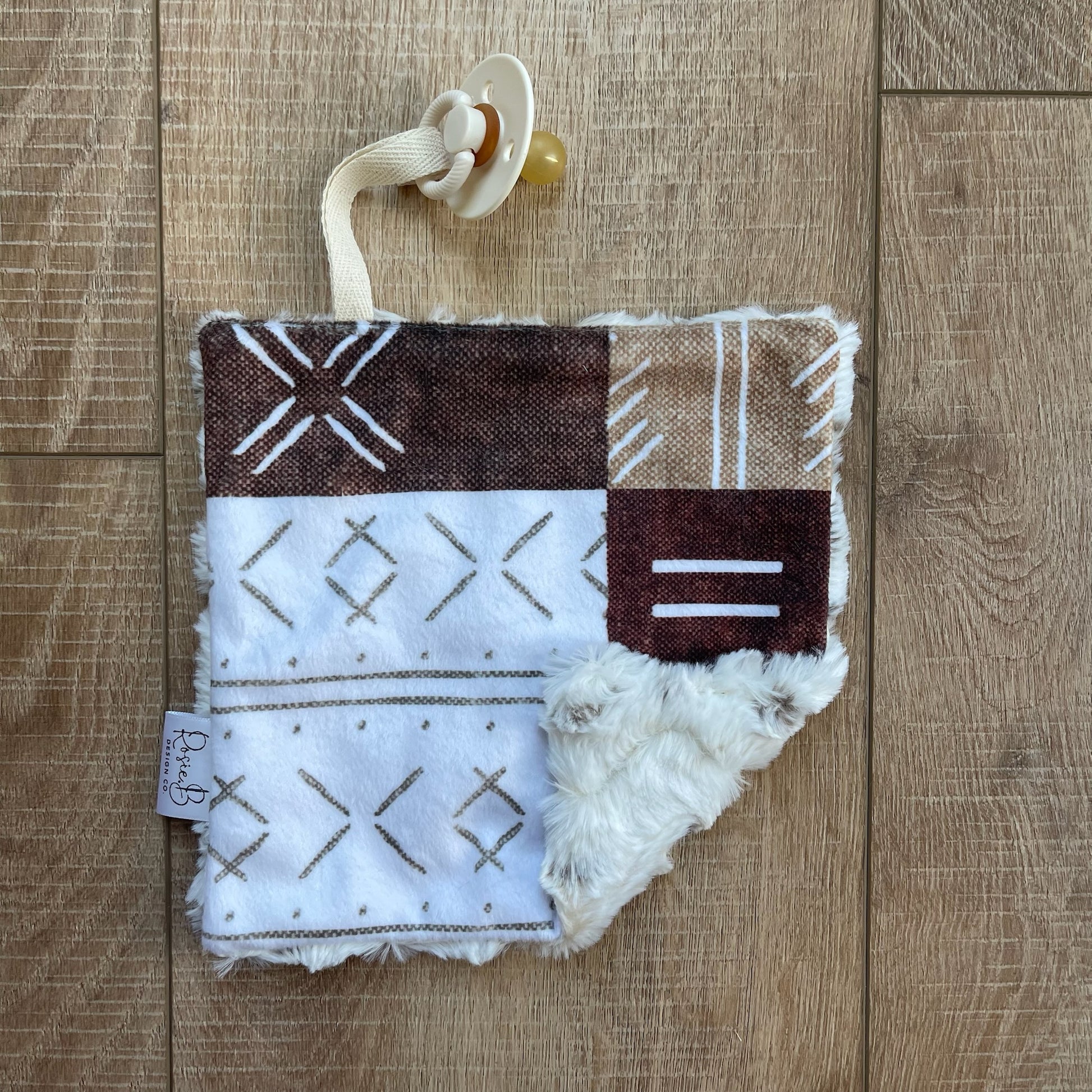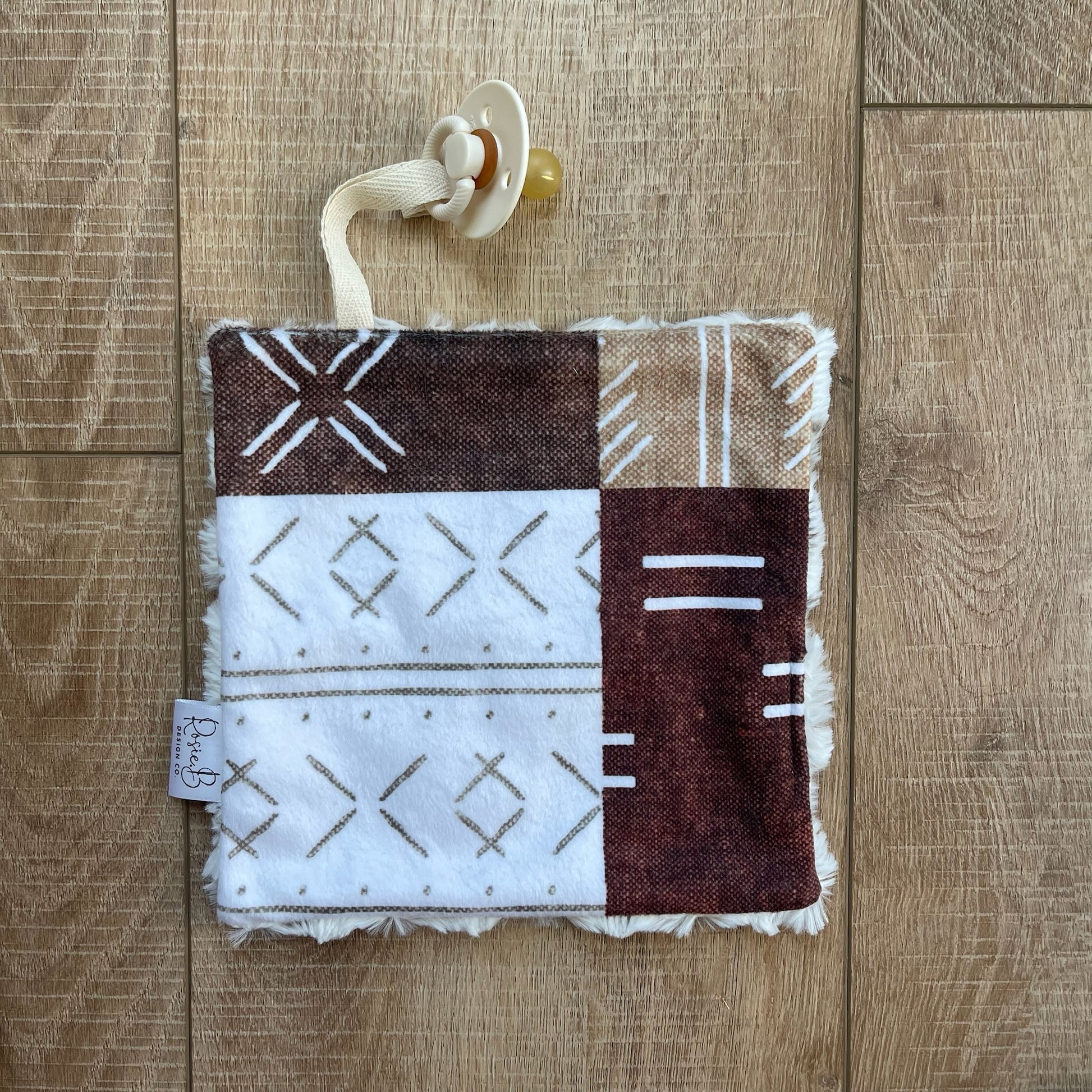 Our paci pal features a twill ribbon to attach a pacifier, teether, toy, or any item your baby loves. Measuring approximately 8x8 inches, it's perfect for newborns to grab and older babies to find their pacifier easily. No more losing your binky in the diaper bag either!